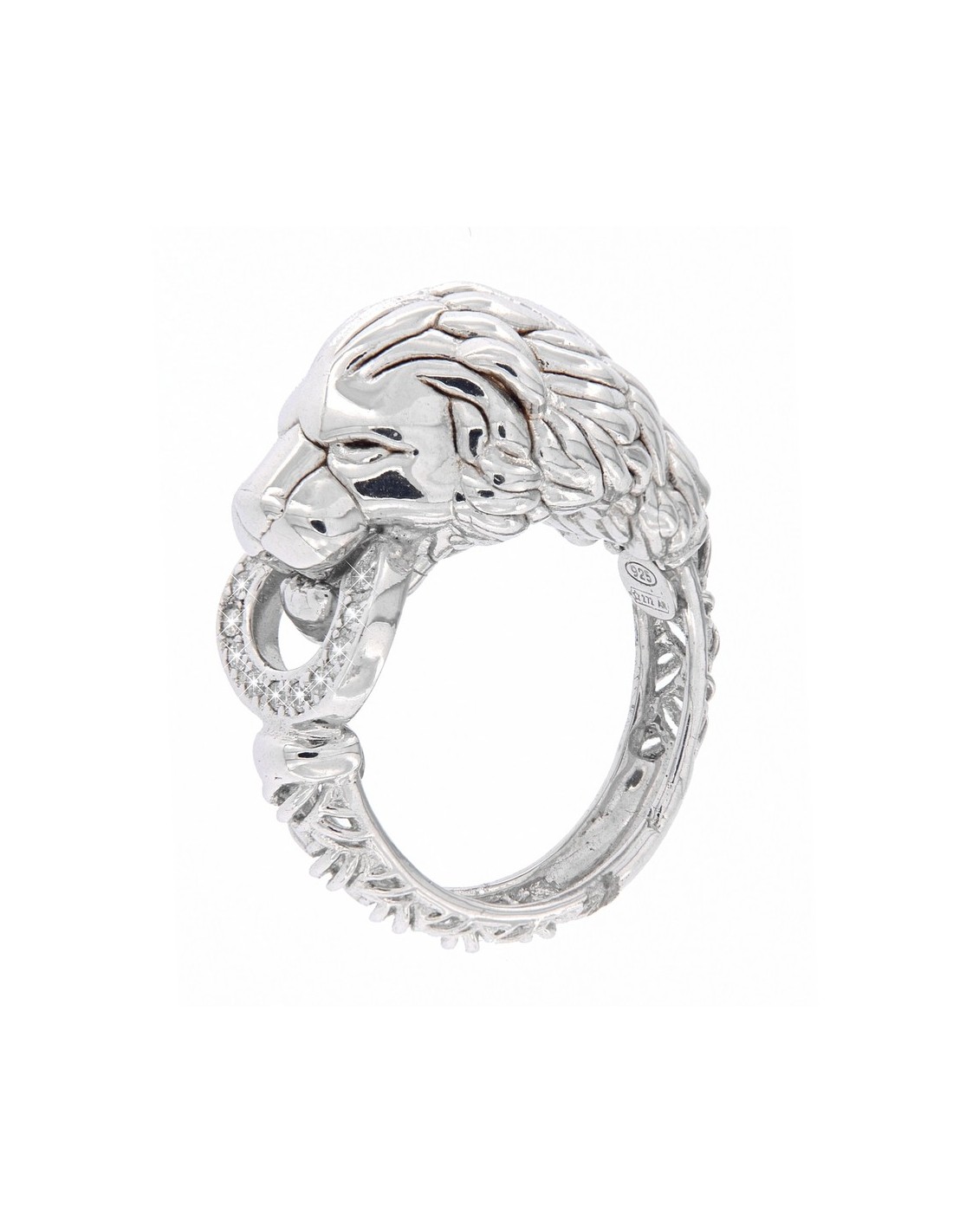 •MATERIALE: l'anello è realizzato interamente in argento 925‰ Rodiato (trattamento brillantante contro l'annerimento) a forma di leone liscio decorato con 11 Zirconia Cubica o CZ colore bianco con taglio di alta qualità simile al taglio Brillante del Diamante;