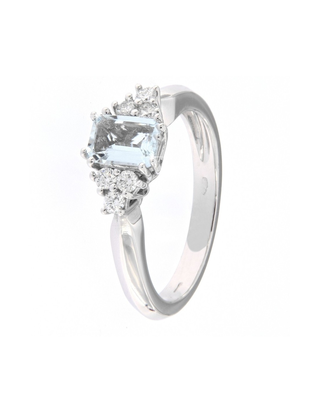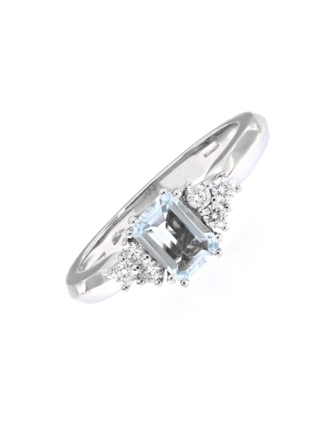 ANELLO ORO BIANCO ACQUAMARINA OTTAGONALE DIAMANTI
