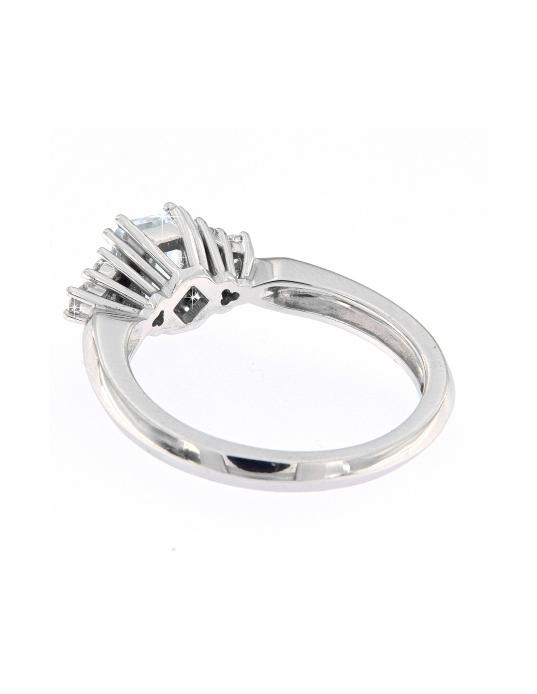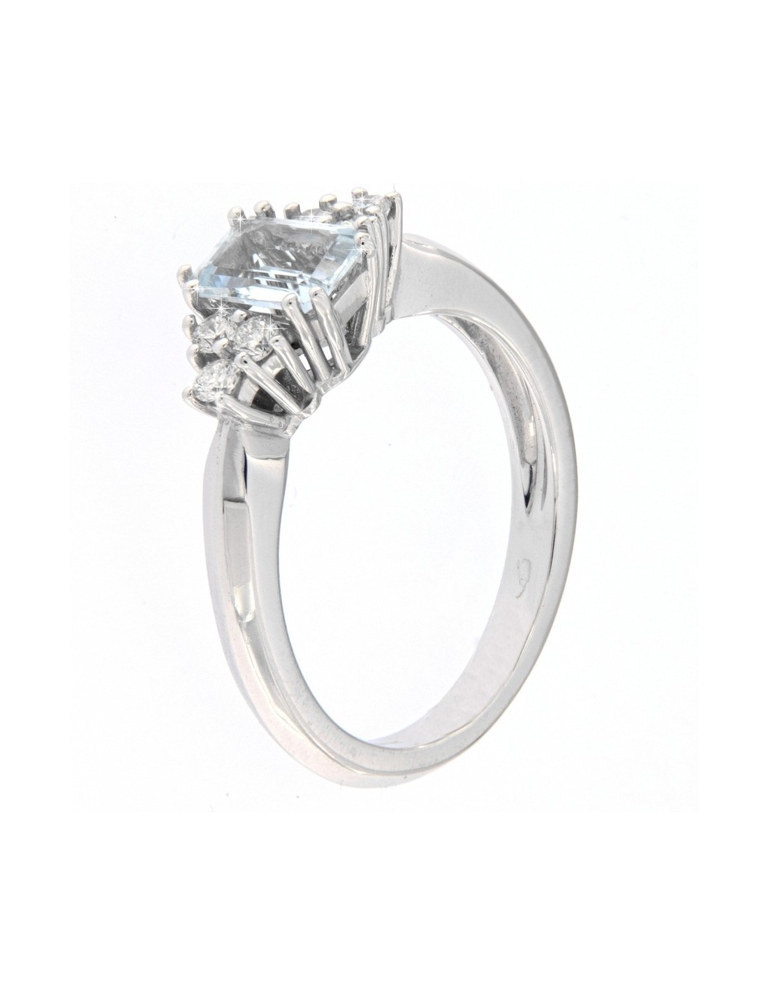•MATERIALE: l'anello è realizzato interamente in oro bianco 750‰ (18 Carati) modello Solitario con l'applicazione di un Acquamarina, Taglio Ottagonale di alta qualità, dalle dimensioni di 7x5 millimetri e peso di 0,76 Carati contornati da sei Diamanti taglio Brillante Rotondo, Colore F, Purezza VS del peso complessivo di 0,25 Carati;