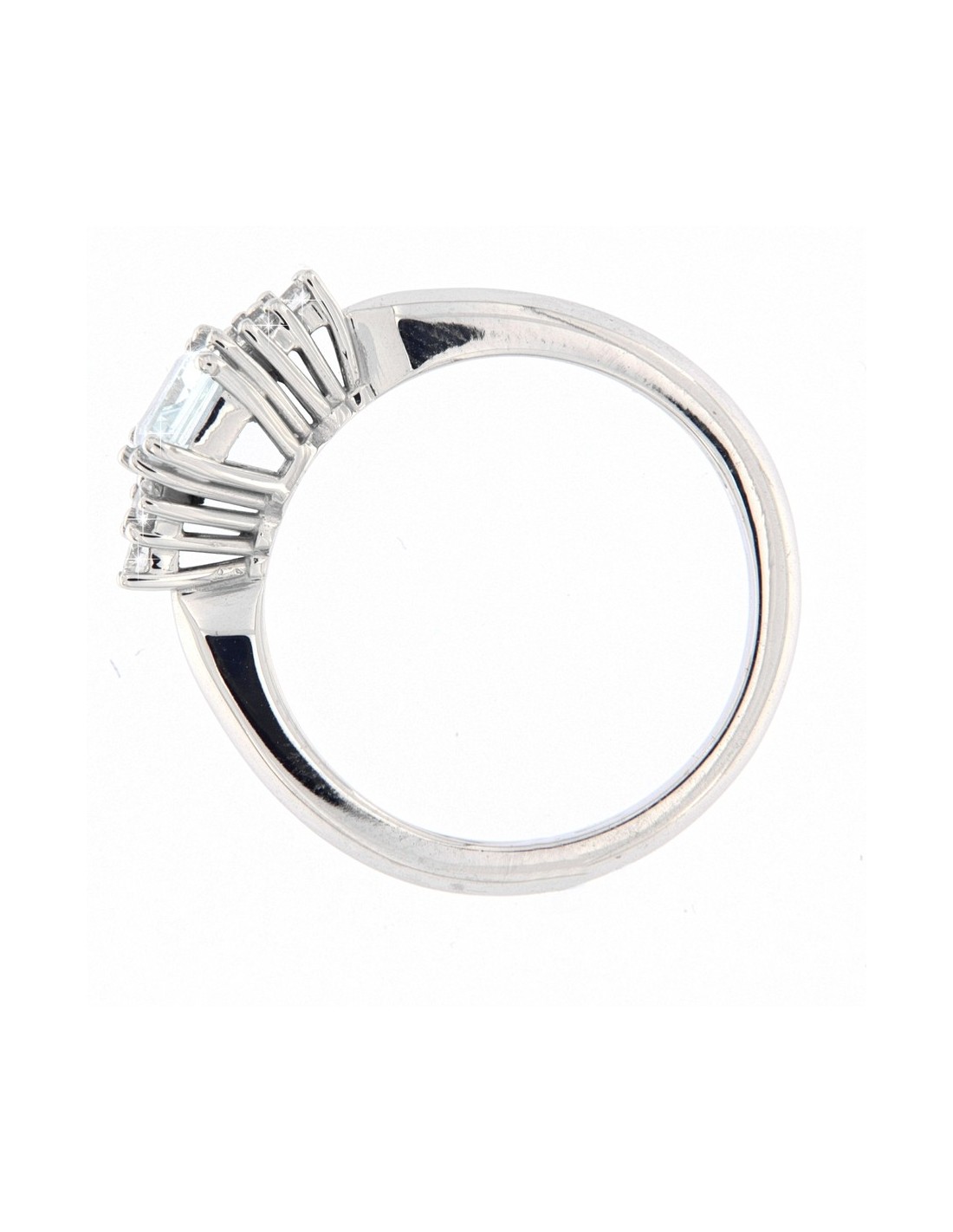 •INCASTONATURA: il montaggio dell' Acquamarina avviene tramite un castone a otto griffe, mentre per i sei Diamanti laterali avviene tramite castone a filo che le serrano in modo permanente;