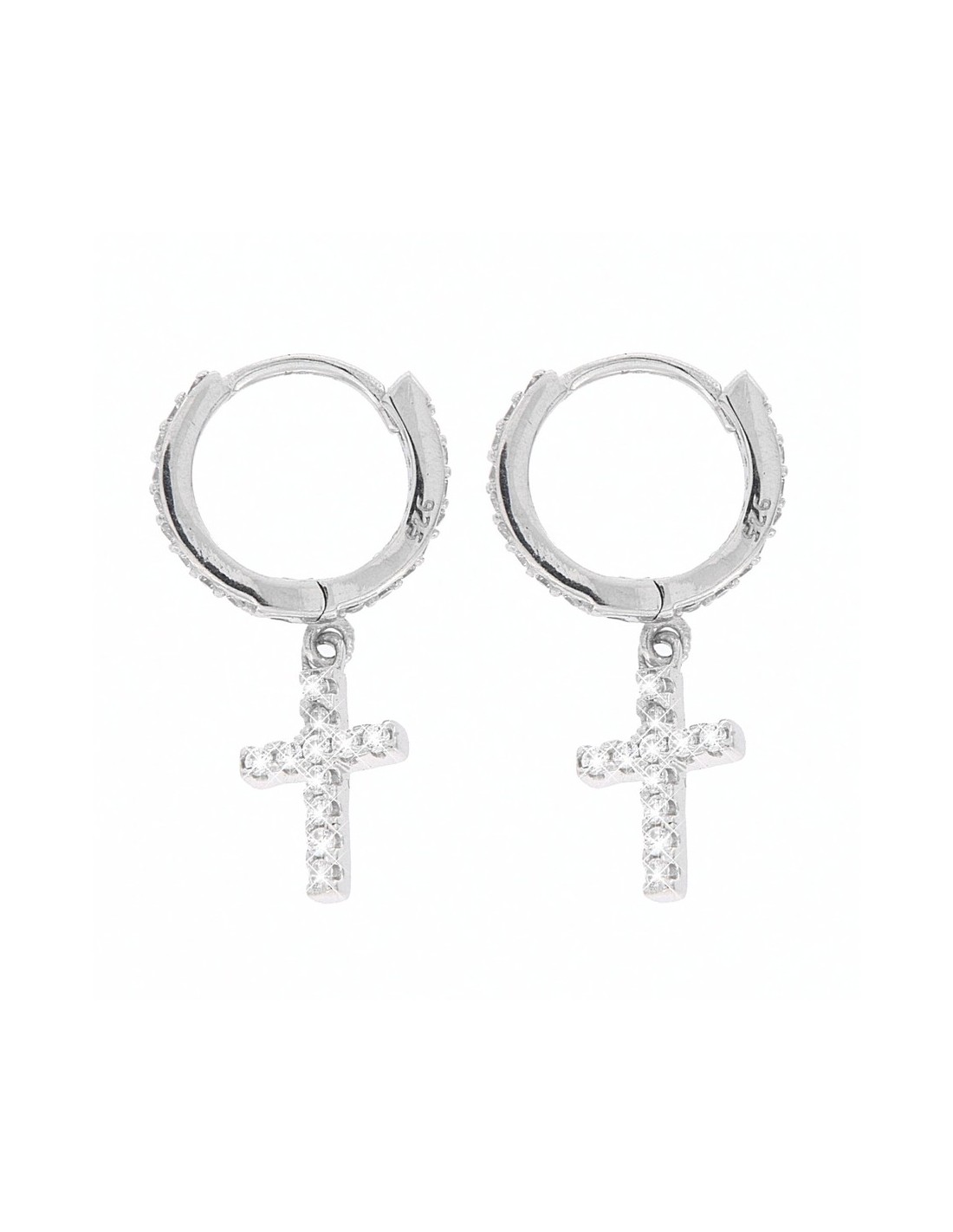 •MATERIALE: gli orecchini sono realizzati interamente in argento anallergico 925‰ Rodiato (trattamento brillantante contro l'annerimento) modello a cerchio con chiusura a scatto con Zirconia Cubica o CZ bianchi con taglio di alta qualità simile al taglio Brillante del Diamante con ciondolo pendente per ciascun cerchio, a forma di croce pavettata interamente in argento 925‰ Rodiato (trattamento brillante contro l'annerimento) con Zirconia Cubica o CZ di colore bianchi;