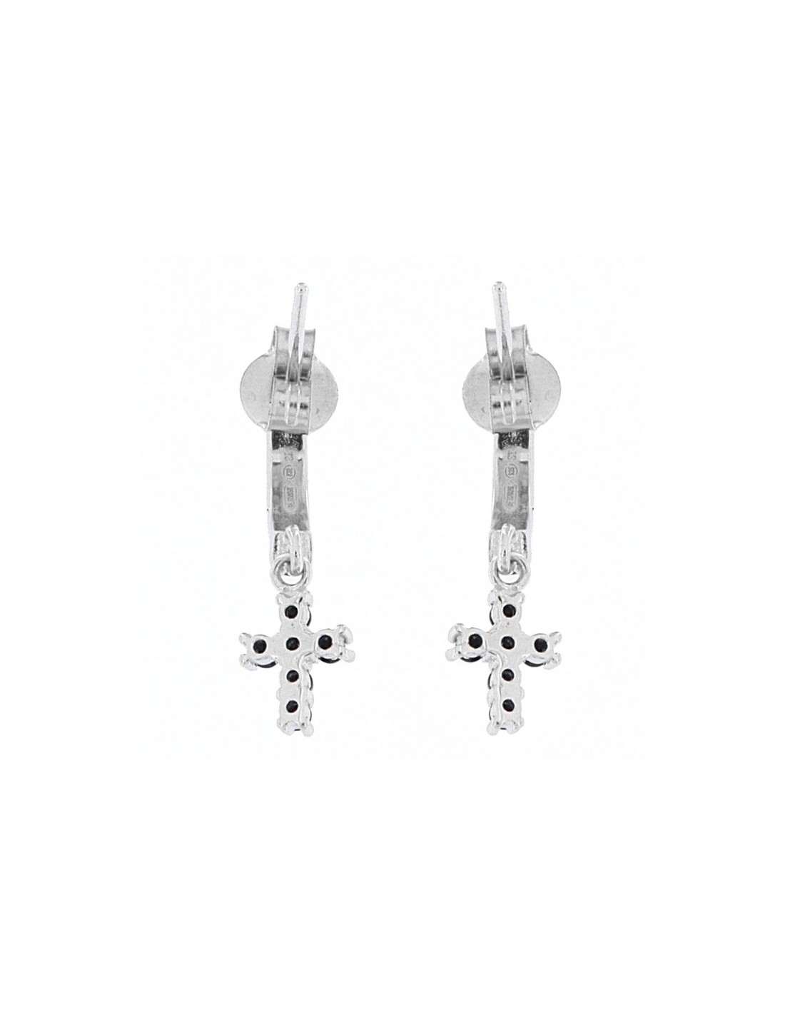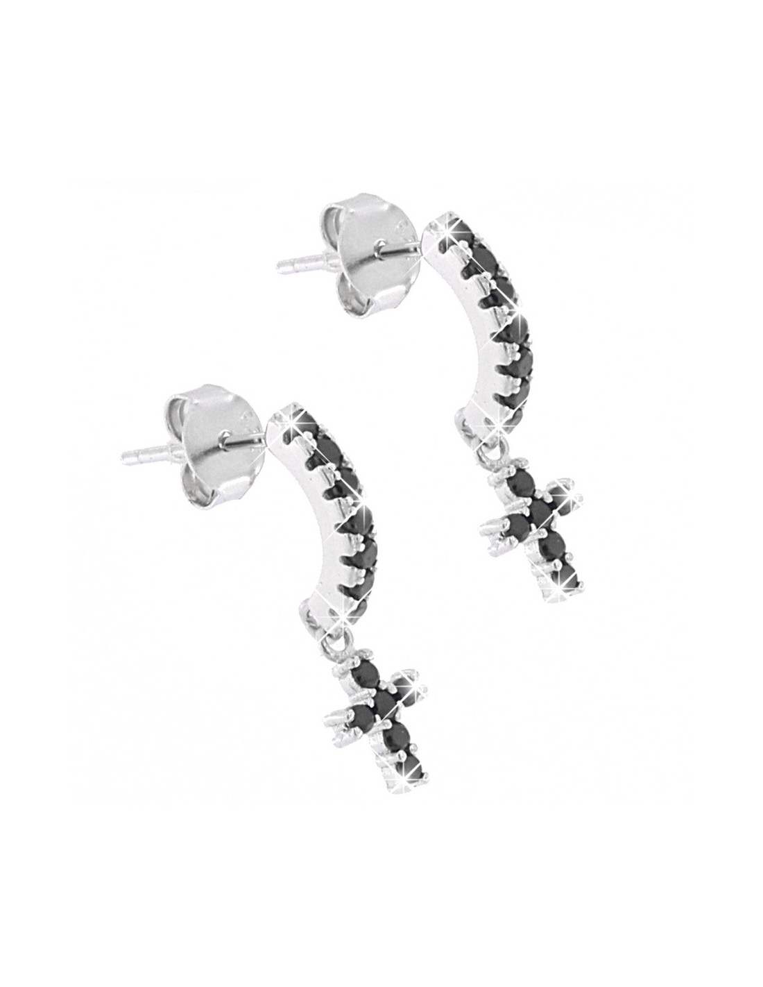 Orecchini Argento Rodiato Semicerchi Croci Zirconi