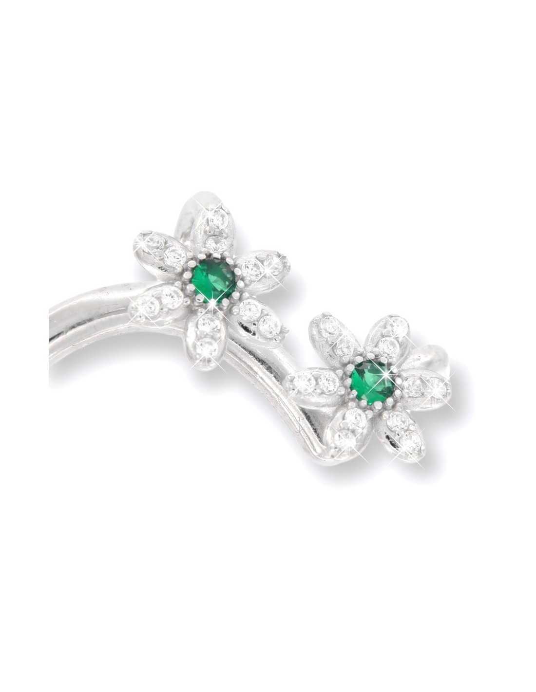 EarCuff Argento Rodiato Dx Zirconi Verdi/Bianchi