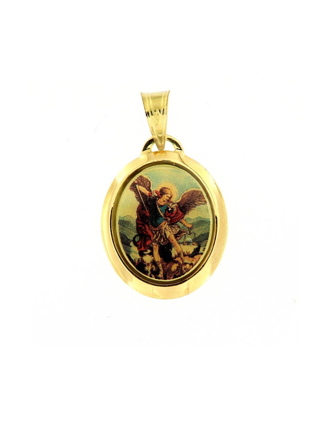 •MATERIALE: il ciondolo è realizzato interamente in oro giallo 750‰ (18 Carati) raffigurante l'icona dell'Arcangelo Michele rappresentato come un combattente con la spada nella mano e sotto i suoi piedi il dragone, simbolo di Satana sconfitto in battaglia;