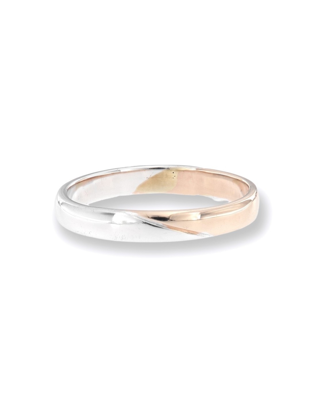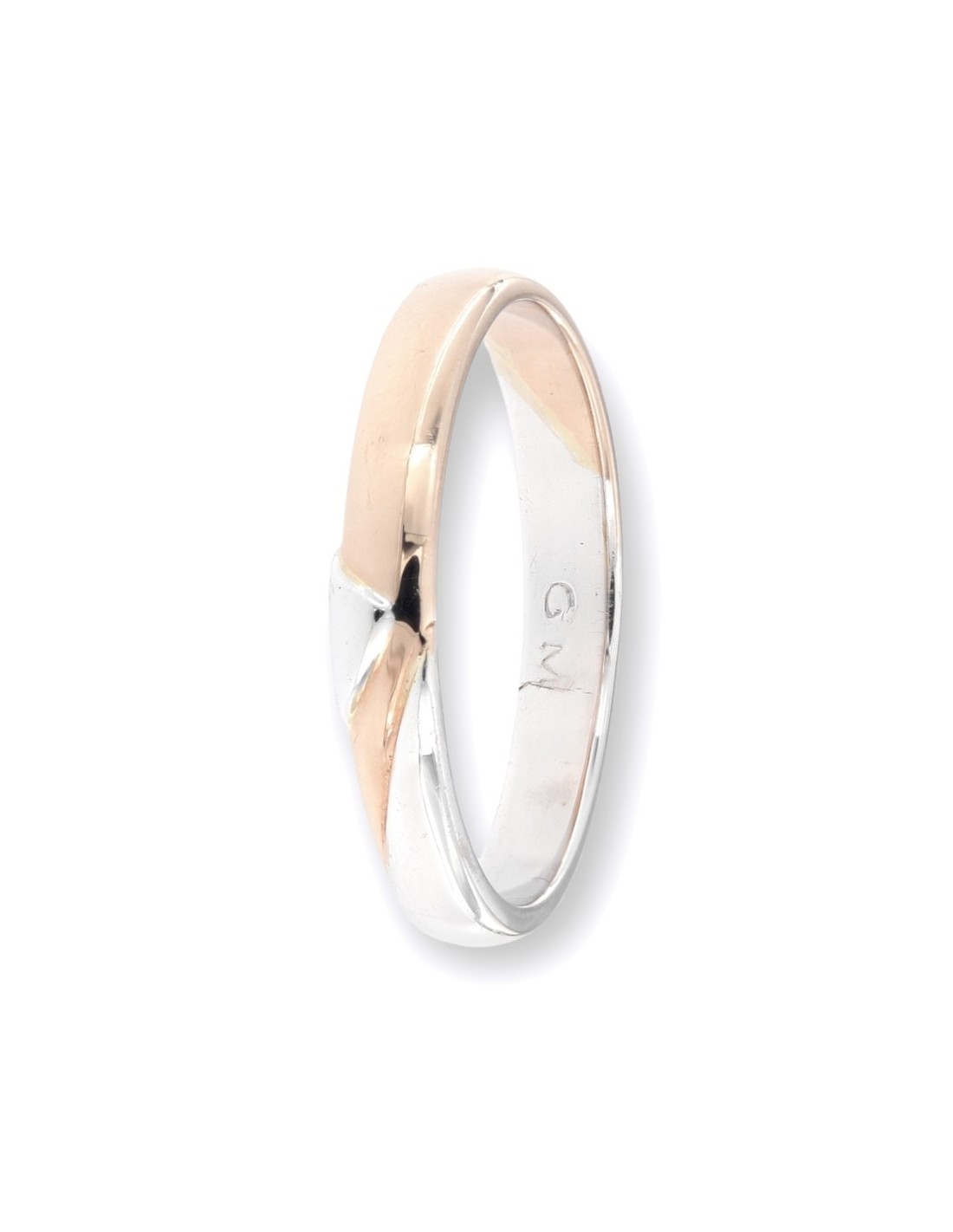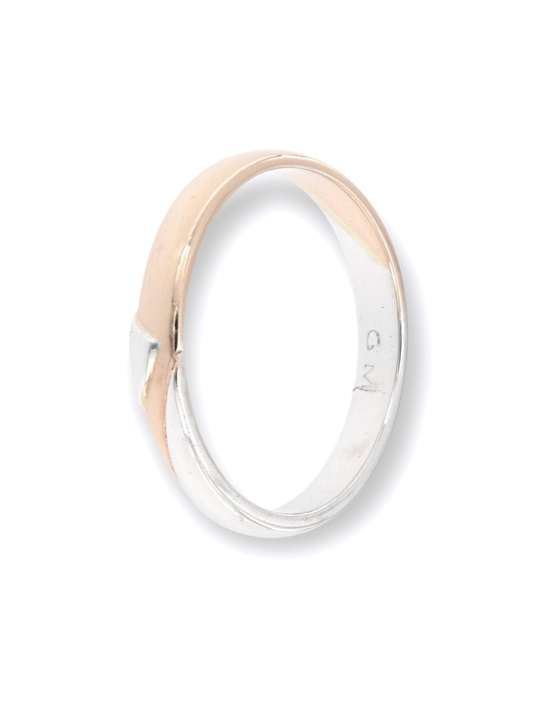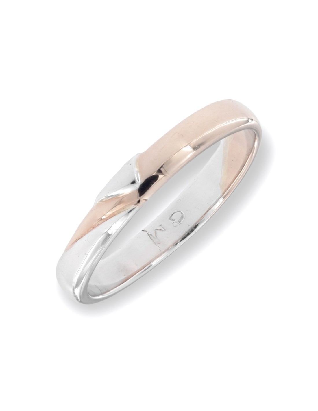•MATERIALE: l'anello è realizzato interamente in oro bianco e rosa 750‰ (18 Carati) modello mezzotondo metà in oro bianco e metà in oro rosa con inserto a triangolo in oro bianco;