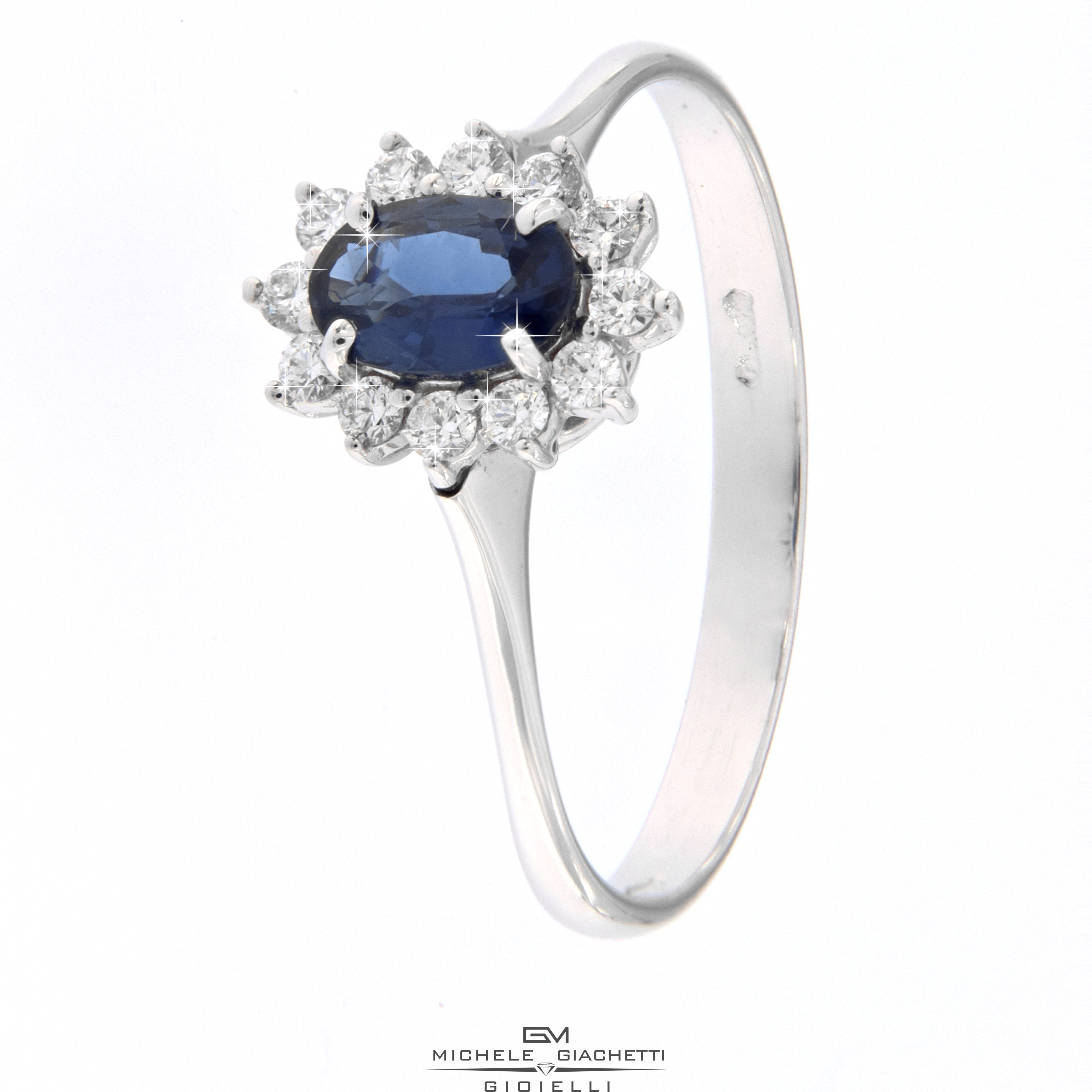 Ed infine come altra alternativa troviamo l'anello principessa o margherita con lo zaffiro blu: